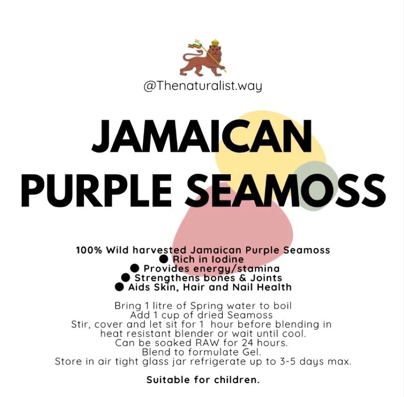 - Enhances Skin Health – Packed with sulfur, Purple Sea Moss helps detoxify the body and promotes skin healing, addressing issues such as eczema, acne, and wrinkles.